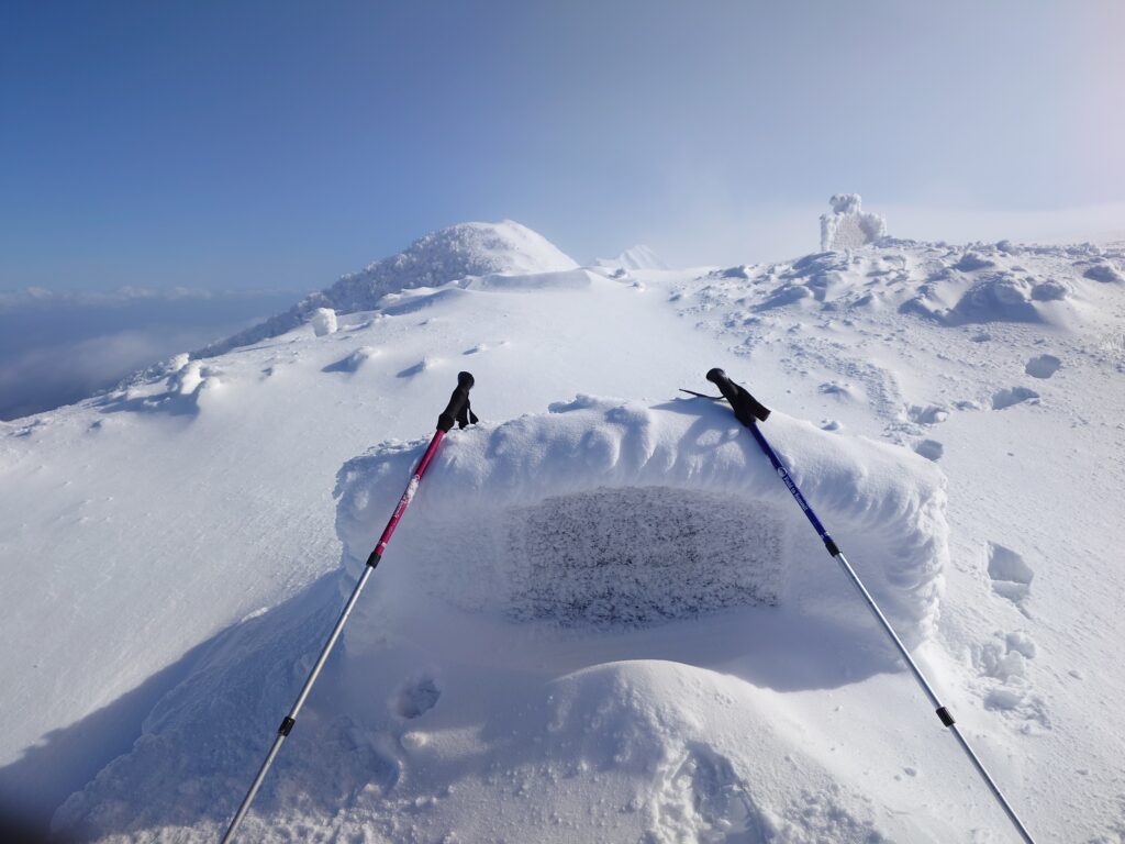 初めて雪山でサミットポールを使って来ました! 大山南壁の谷です。